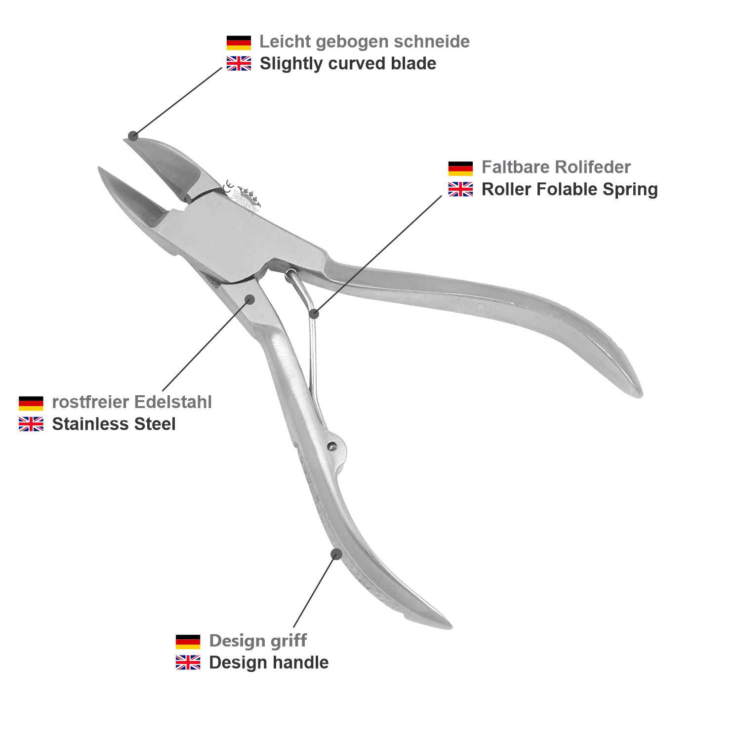 – schneidet selbst stark verhornte Nägel